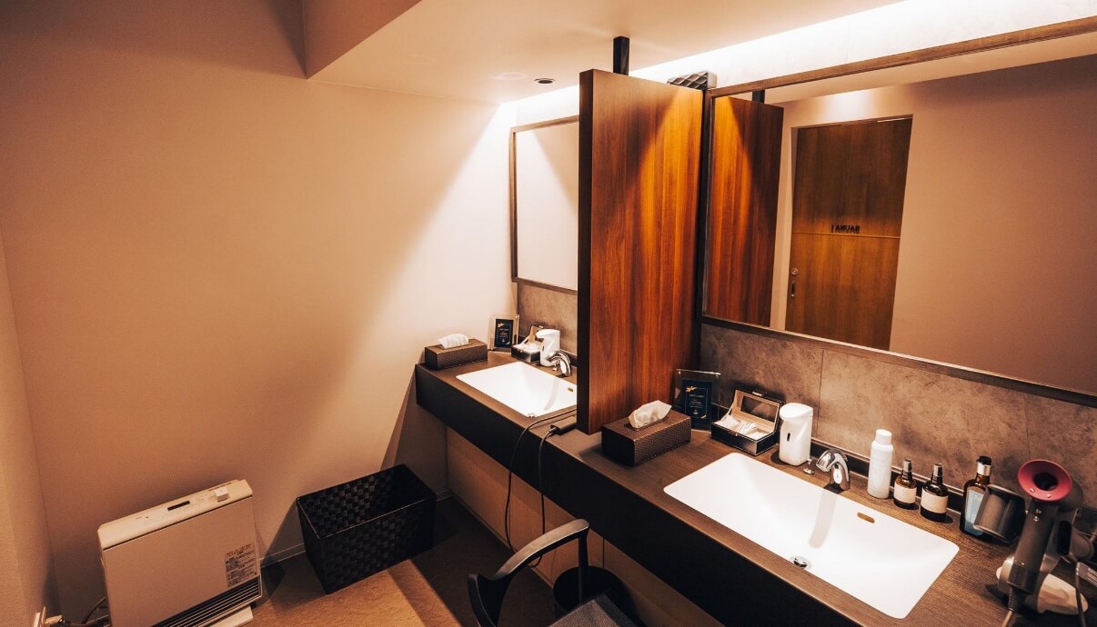 ドライヤー、アメニティ完備。基礎化粧品はすべての方に安心してお使いいただける上質なものをご用意しています。お時間を気にせずゆっくりと身支度を整えていただけます。
